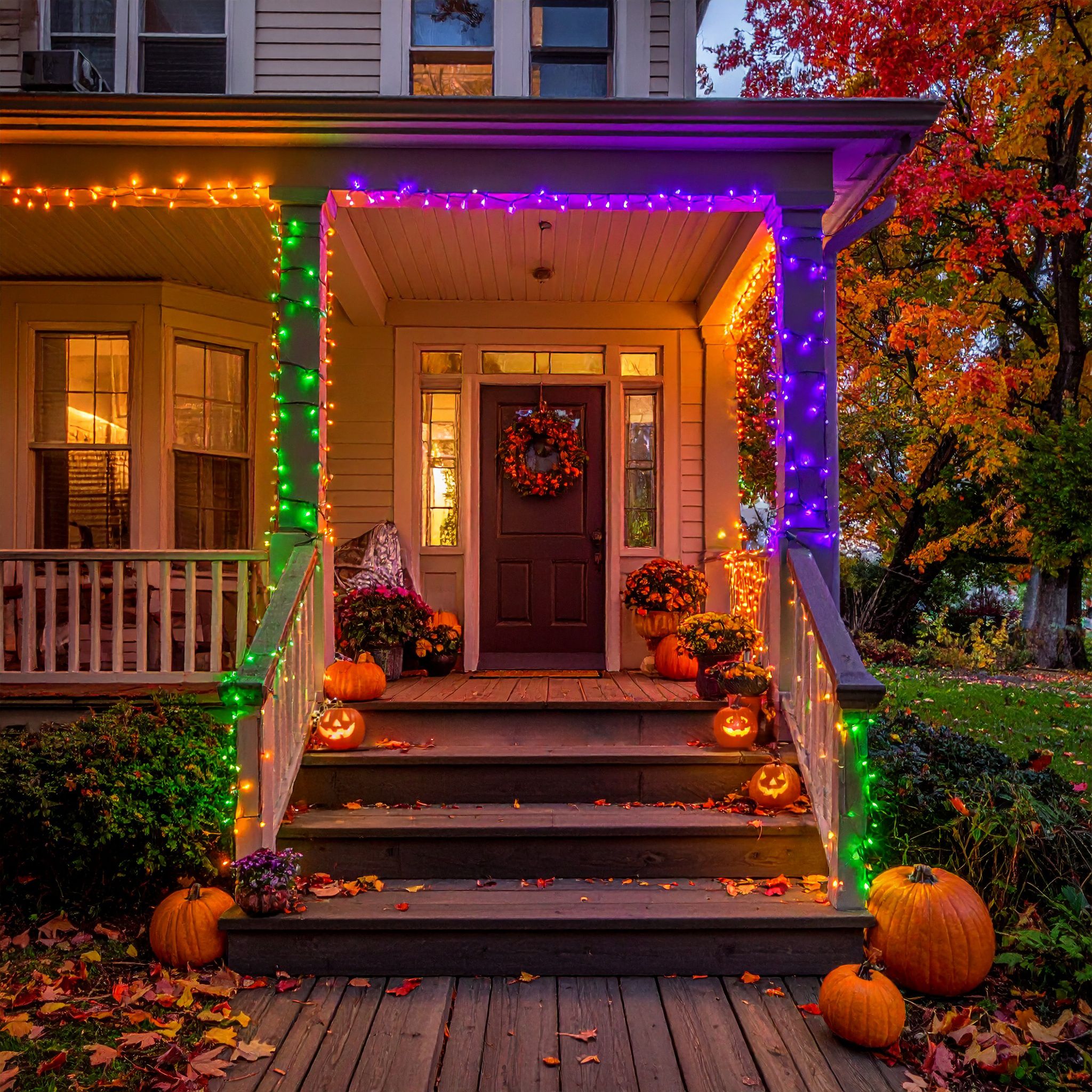Want to guide the little ghouls to your door? Spritzers, C9 Glitzers®, and C9 bulbs make pathways pop. Not only does it look amazing, but it’s safer too. (Because nothing ruins Halloween faster than tripping over a curb in a dragon costume.)