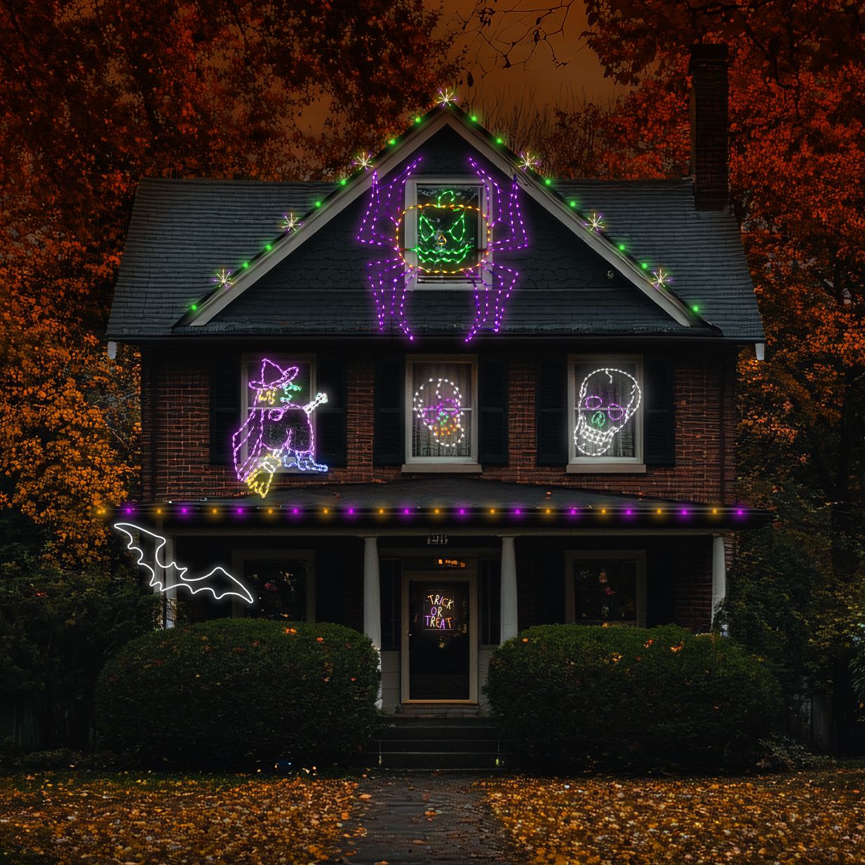 Want to guide the little ghouls to your door? Spritzers, C9 Glitzers®, and C9 bulbs make pathways pop. Not only does it look amazing, but it’s safer too. (Because nothing ruins Halloween faster than tripping over a curb in a dragon costume.)