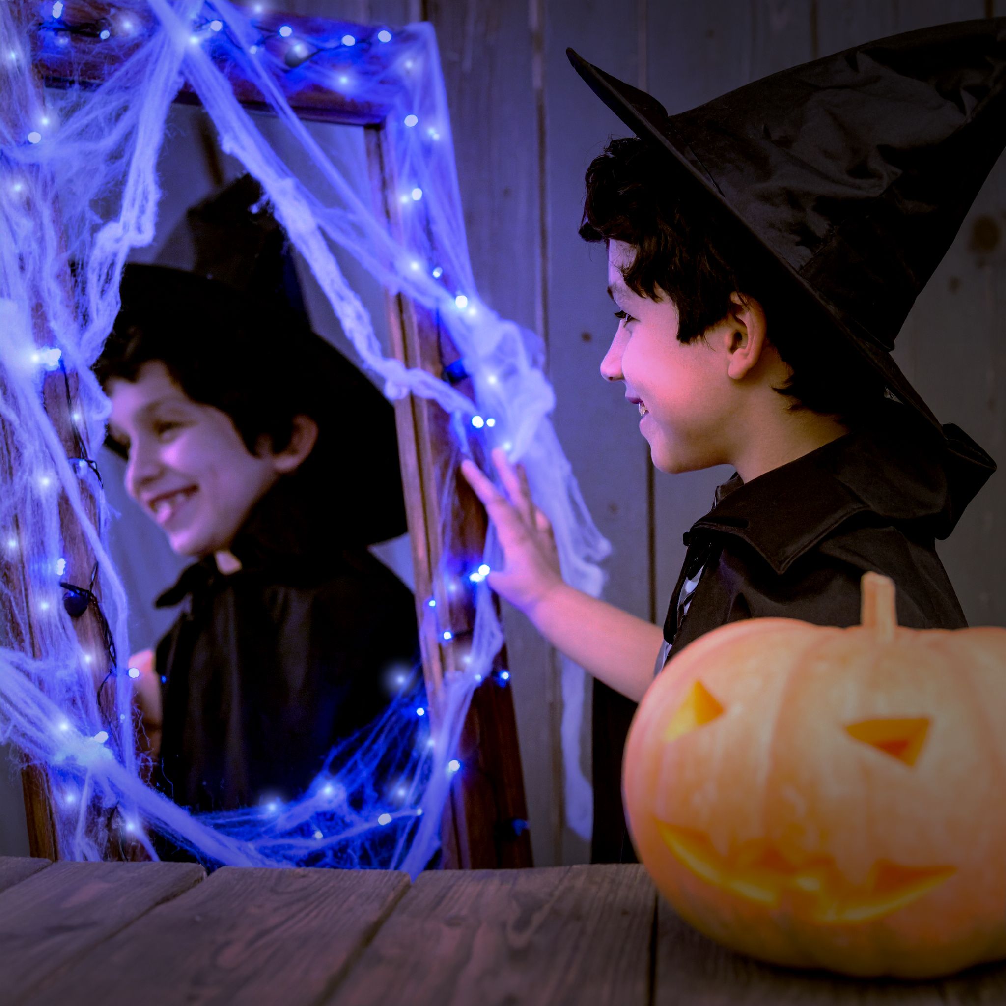 Line a mirror with cool white or blue LEDs, drape cobwebs over it, and watch as it takes on a ghostly depth. Perfect for a haunted entryway or that “creepy-cute” party backdrop.